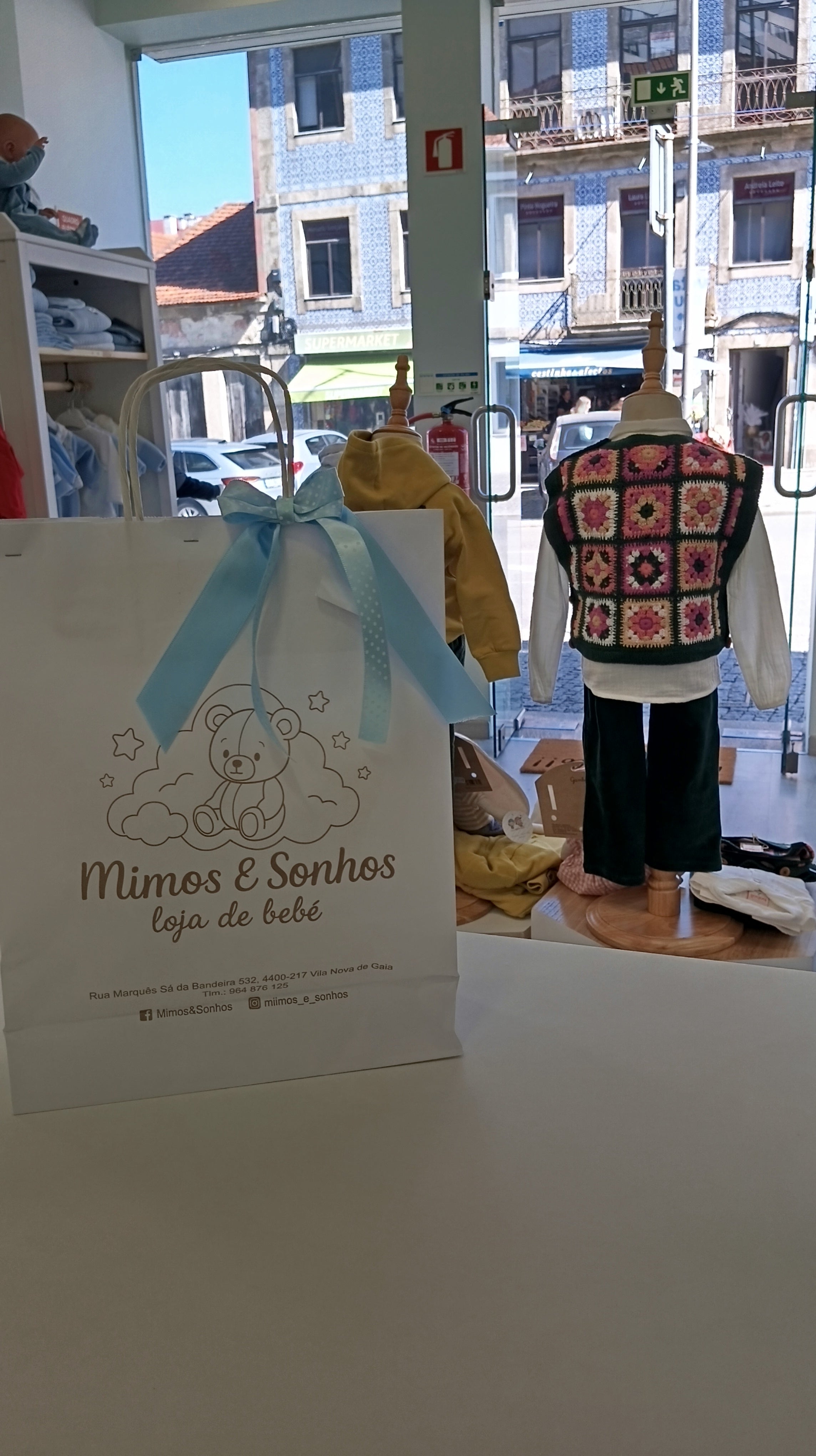 Cada conjunto e cada acessório é escolhido e embalado com a máxima dedicação. Na Mimos&Sonhos, garantimos materiais seguros e a certeza de que o seu presente chegará com o toque especial que merece. É a nossa promessa de conforto e qualidade para o seu bebé.